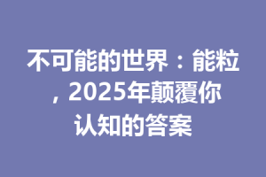不可能的世界:能粒,2025年颠覆你认知的答案