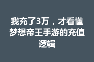 我充了3万,才看懂梦想帝王手游的充值逻辑