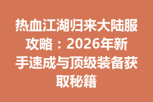 热血江湖归来大陆服攻略:2026年新手速成与顶级装备获取秘籍